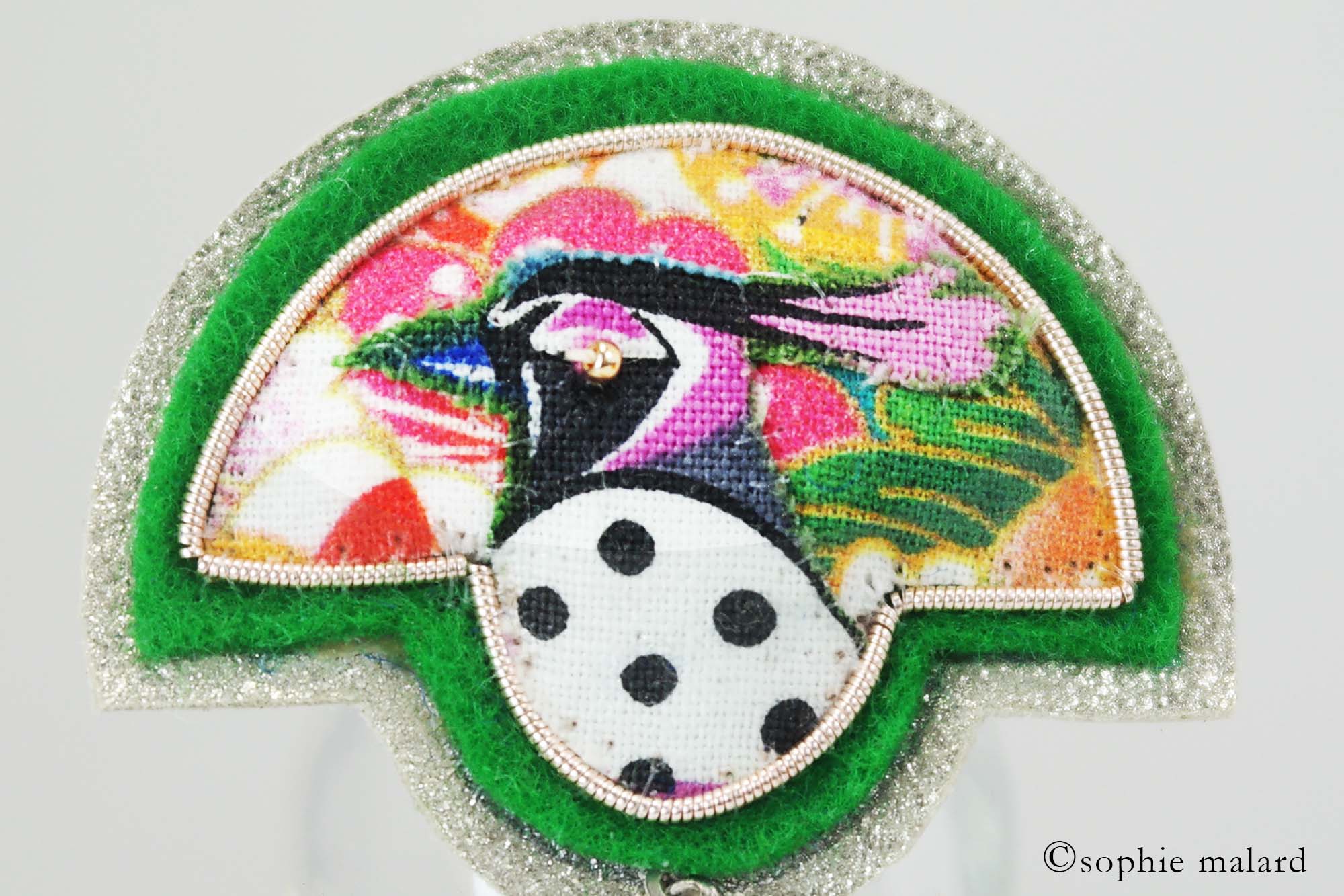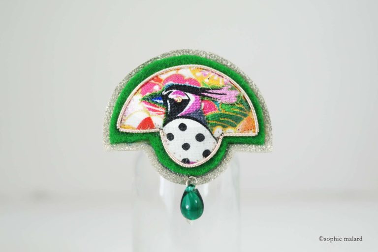 J’ai eu un grand coup de coeur pour ce magnifique tissu d’oiseau couronné, crée par Alexander Henry. Avec cette broche délicieusement vintage, offrez à vos tenues une touche de charme exotique et intemporel !