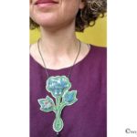 Voici l’un des plus grand spécimen de ma boutique. Ce collier plastron est né de la rencontre d’une pivoine et d’un scarabée. Il peut être porté en collier ou devenir un « bijou de mur », comme cela m’a si gentiment été suggéré. Je l’ai conçu pour les audacieuses qui osent porter de grandes parures pour attirer tous les regards !